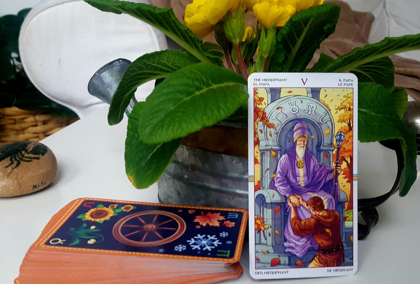 Pak se v dalších dvou tarotových kartách (Císařovna a Císař) konfrontuje se svou vnitřní ženou a vnitřním mužem. A nyní je tato duše zralá k tomu, aby si v lekci Velekněze uvědomila svůj vlastní pohled na svět.